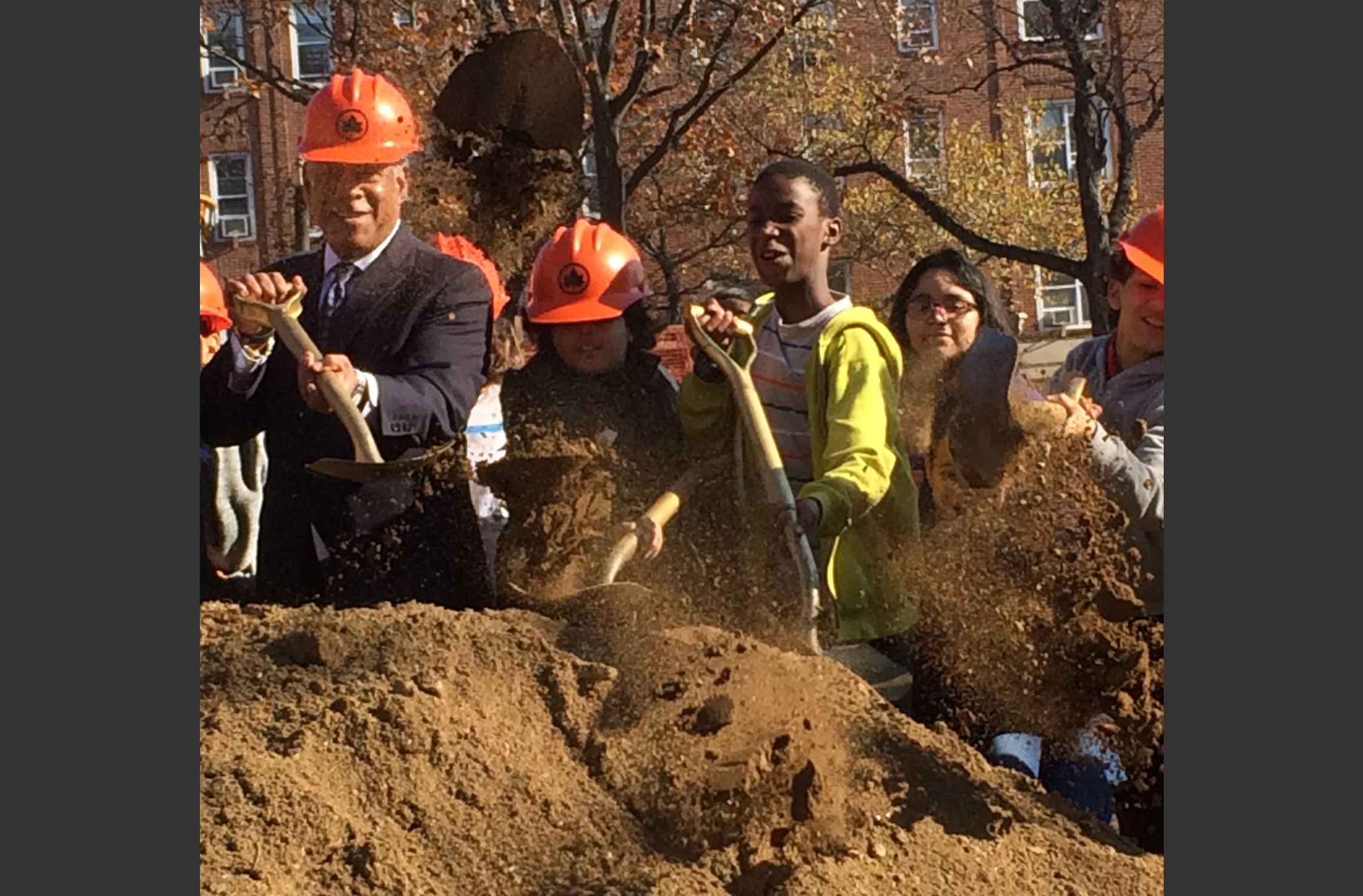 lyons-groundbreaking ← Previous Next → Parks Commissioner Mitchell Silver breaks ground at Lyons Square with the help of local students